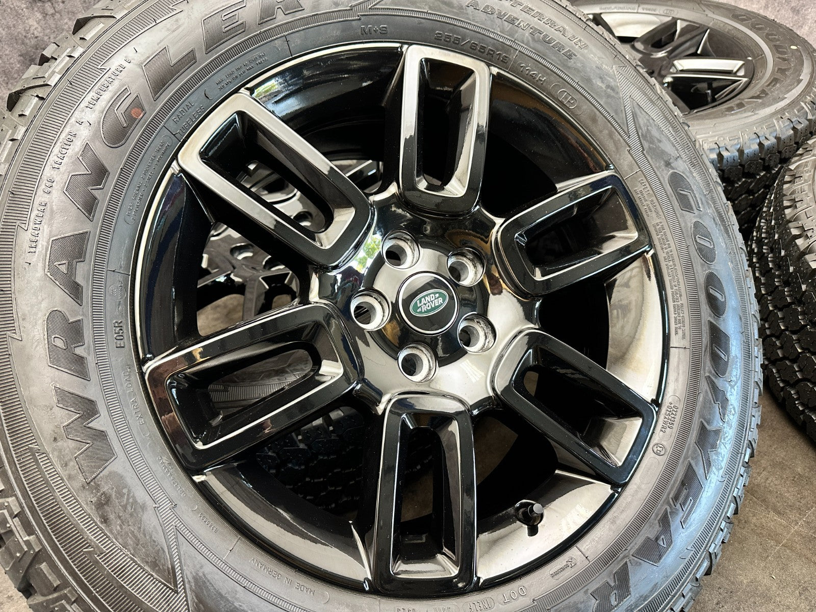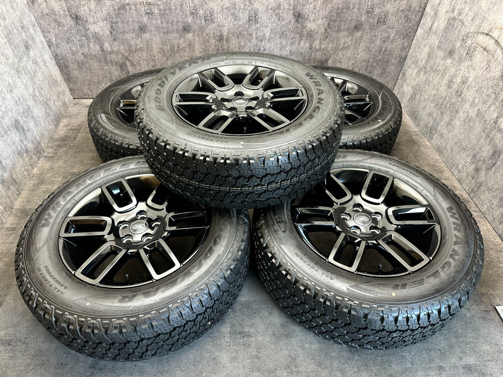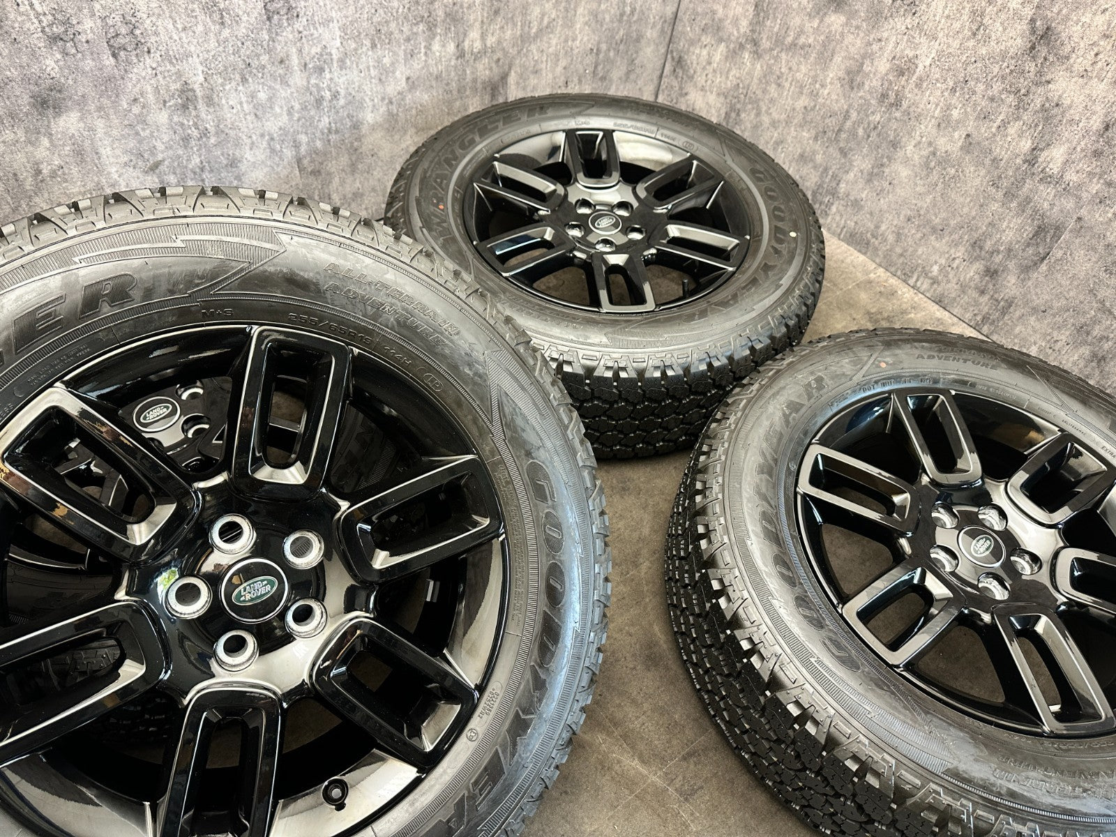 item set of 5 genuine 19" land rover defender L663 style 6010 alloy wheels fitted with the very popular goodyear adventurer all terrain tyres taken off a new vehicle at the dealership. done no miles, brand new! complete with preprogramed TPMS valves and center caps ready to bolt straight on which we will do for you here in our fully equiped workshop. SET OF FIVE WHEELS AND TYRES must know UK delivery international delivery - important info please enquire with a full address and your EORI number before you purchase. trust
