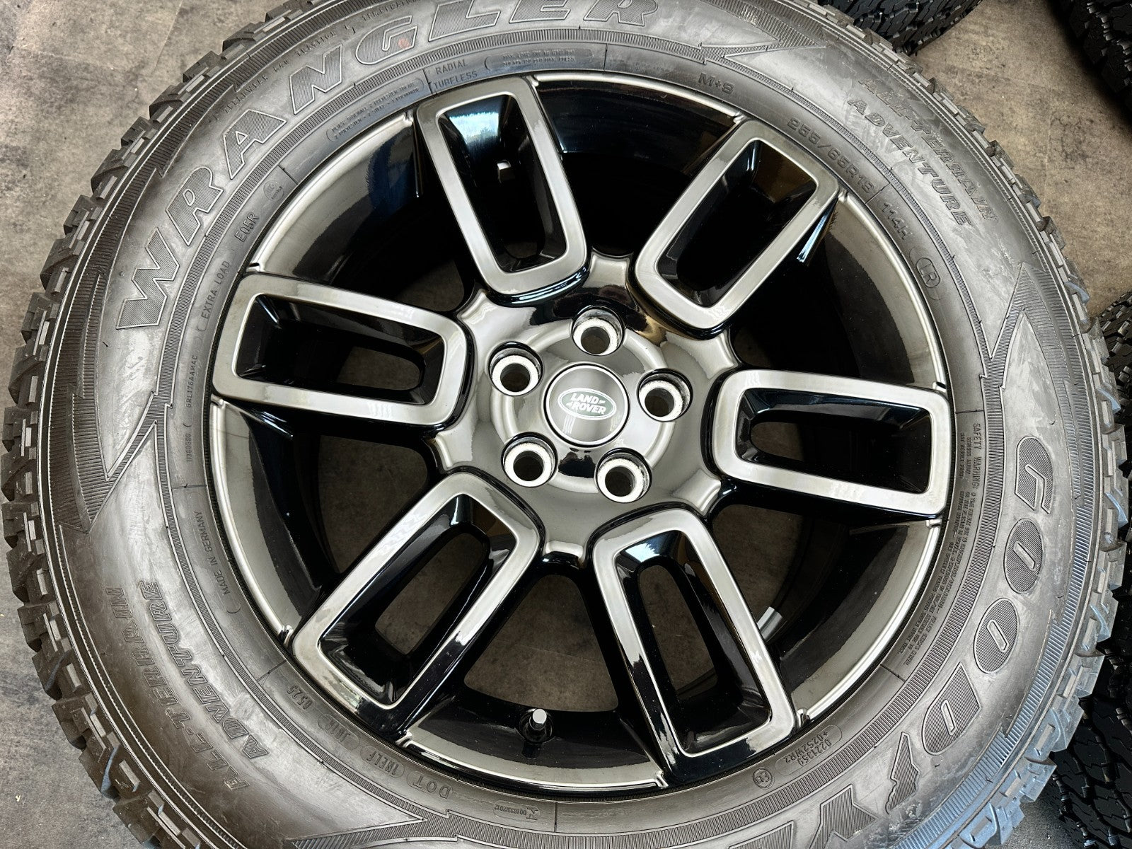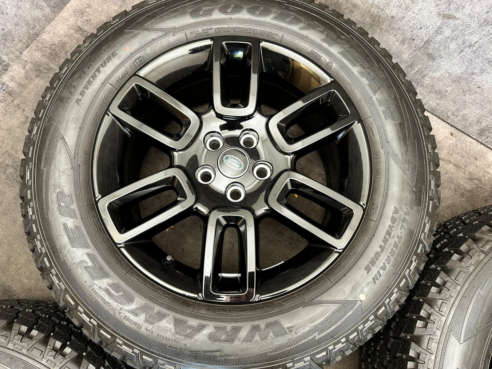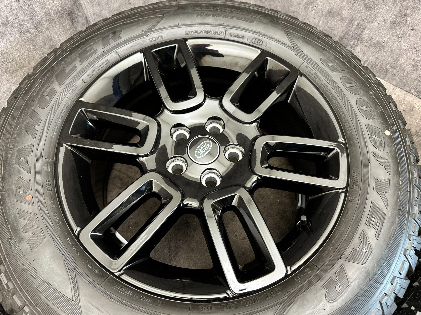 item set of 5 genuine 19" land rover defender L663 style 6010 alloy wheels fitted with the very popular goodyear adventurer all terrain tyres taken off a new vehicle at the dealership. done no miles, brand new! complete with preprogramed TPMS valves and center caps ready to bolt straight on which we will do for you here in our fully equiped workshop. SET OF FIVE WHEELS AND TYRES must know UK delivery international delivery - important info please enquire with a full address and your EORI number before you purchase. trust