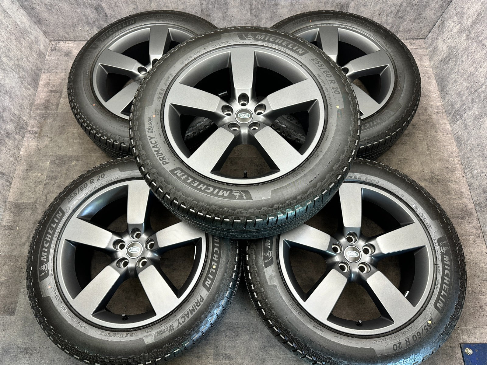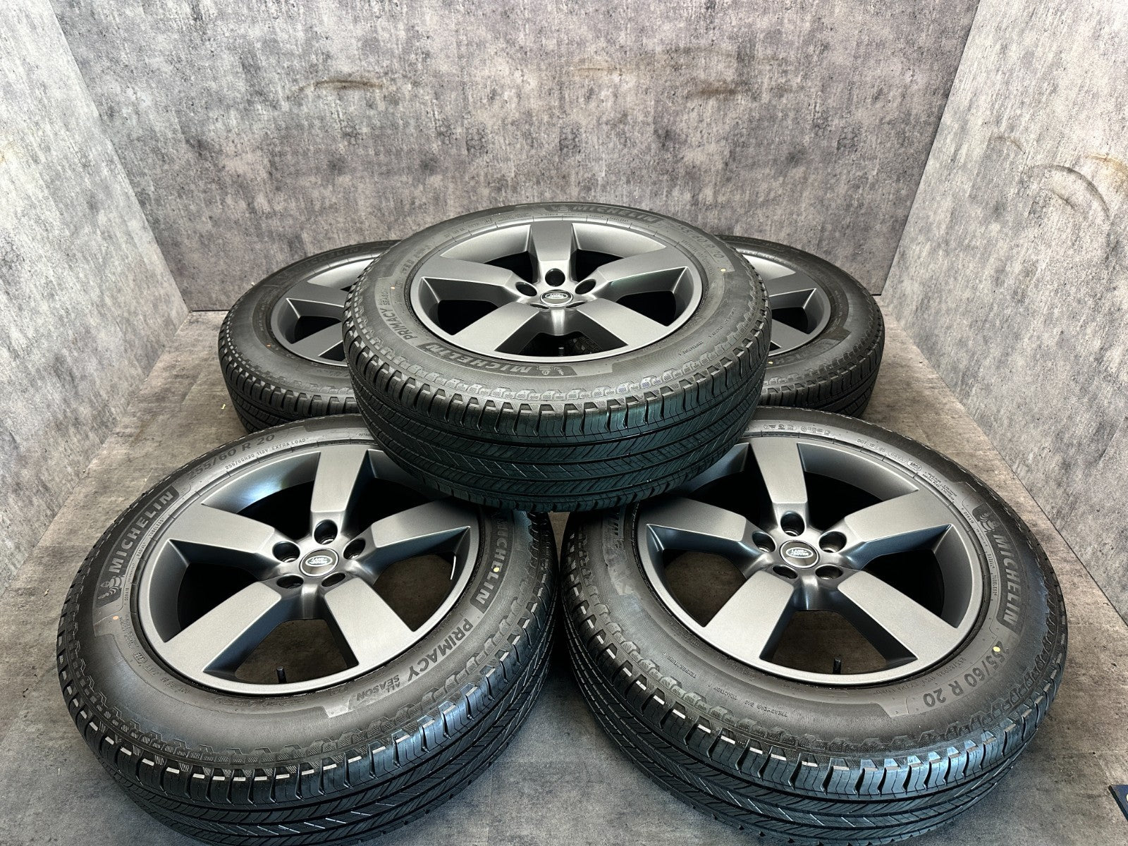set of 5 genuine 20" land rover L663 style 5098 alloy wheels fitted with michelin primacy tyres.
