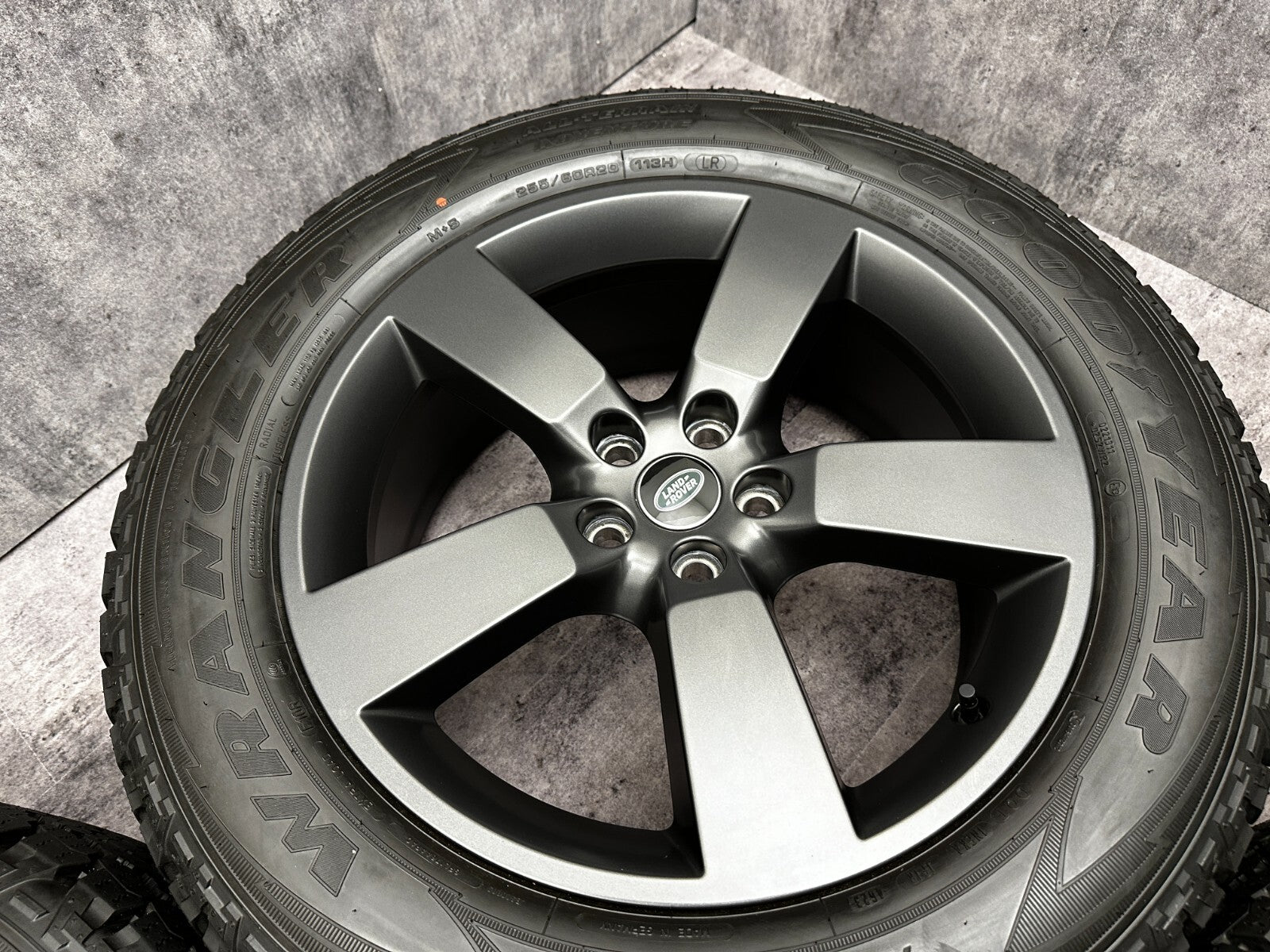 set of 4 genuine 20" land rover L663 style 5098 alloy wheels fitted with goodyear AT (LR) tyres