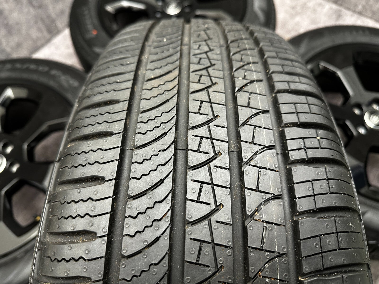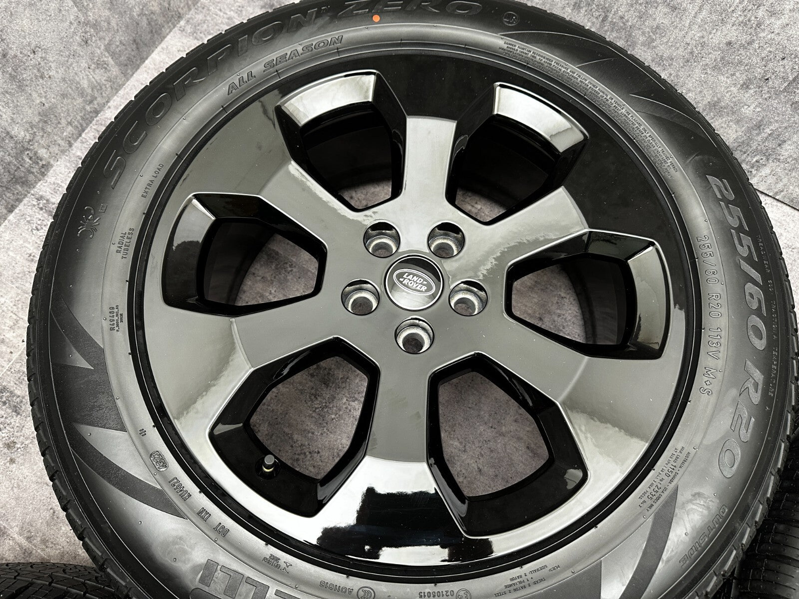 item set of 4 genuine 20" land rover style 6011 alloy wheels fitted with pirelli AS tyres. brand new demounted stock in MINT condition with pimples clearly visible in the pictures taken off a new vehicle and replaced with aftermarket wheels complete with TPMS valves and LR center caps. FREE fitting here in Bedforshire must know UK delivery international delivery - important info please enquire with a full address and your EORI number before you purchase. trust