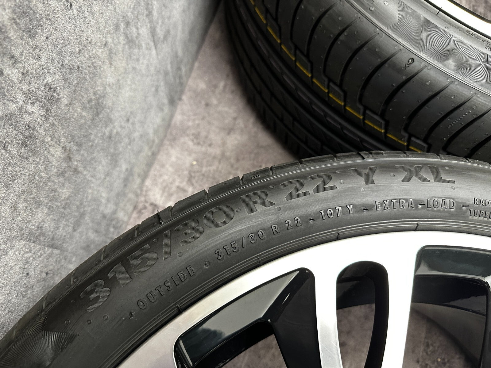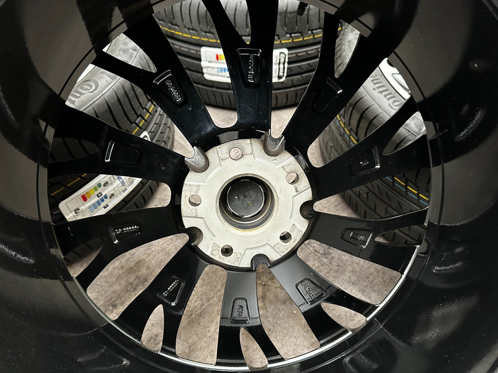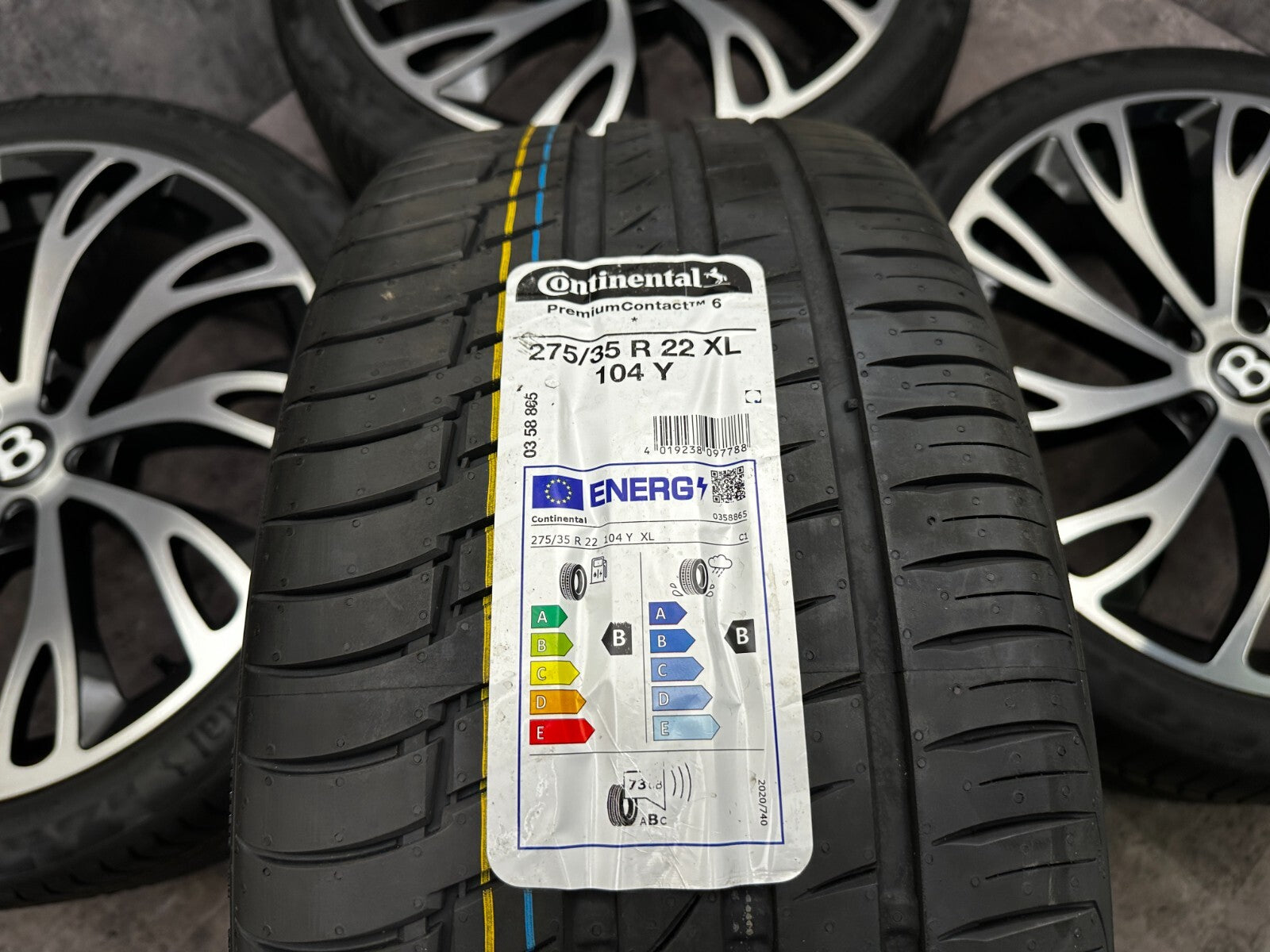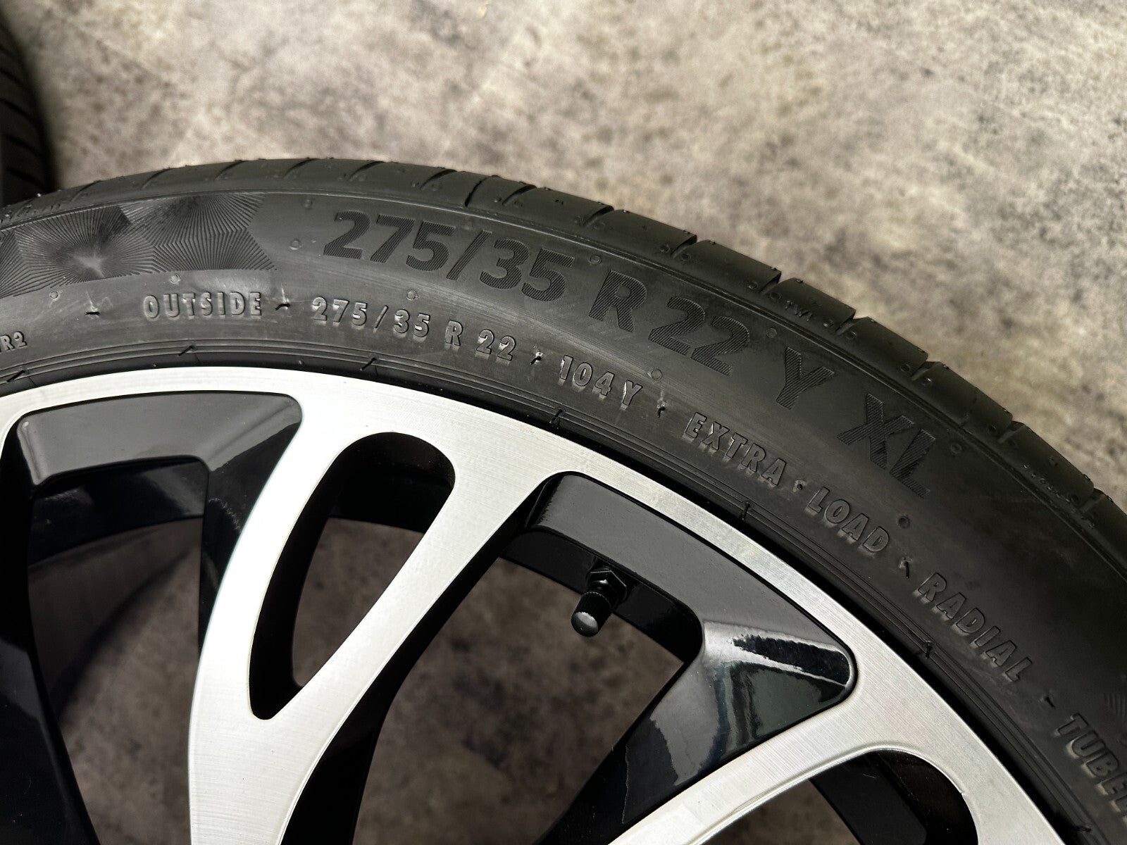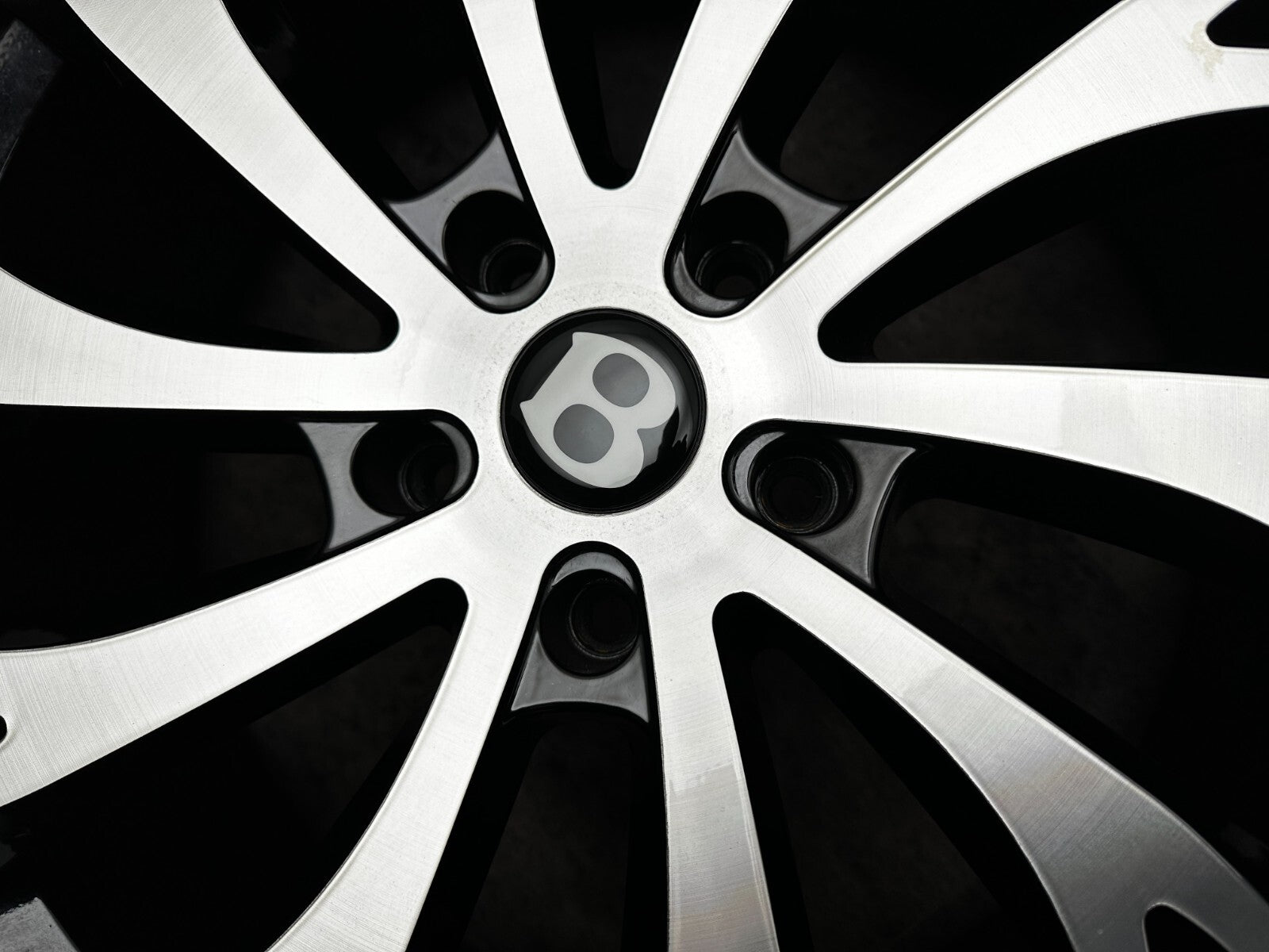 item set of 4 22" bentley gt fitment alloy wheels with continental tyres, genuine bentley center caps & TPMS valves included brand new wheels and tyres finished in gloss black/polish. stunning set of aftermarket wheels designed to fit the current model GT/GTC (will not fit the earlier models). this set has a couple of small marks hence crazy price! RRP £4000 + THESE ARE NOT GENUINE BENTLEY - THEY HAVE GENUINE BENTLEY CAPS FOR THAT OEM LOOK.