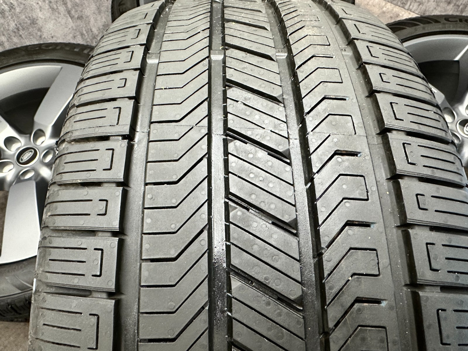 set of 4 genuine 22" land rover L663 style 5098 alloy wheels fitted with continental RX (LR) tyres