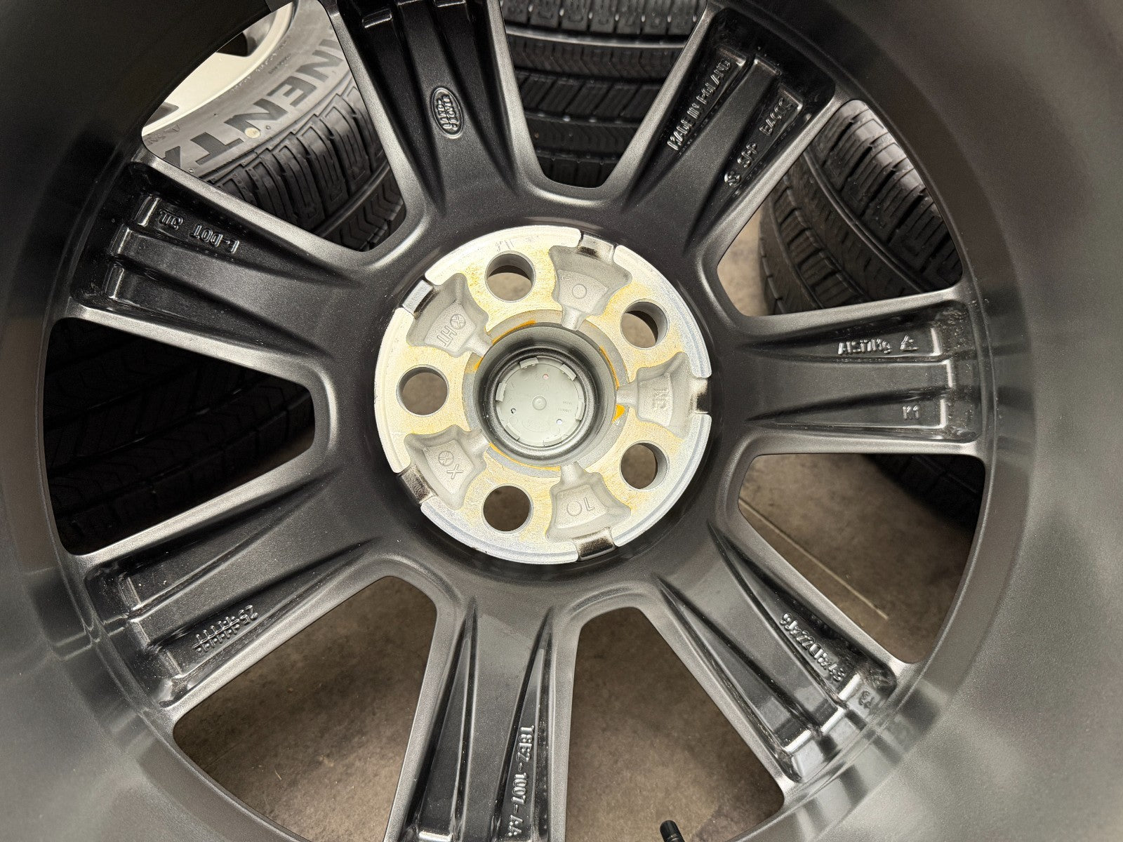 item set of 5 genuine 22" land rover L663 style 7030 alloy wheels fitted with continental RX (LR) tyres unmarked, complete with pre-programmed TPMS valves and center caps included. ready to bolt straight on at your home address or FREE fitting here in bedfordshire this is the two tone grey with cut face and tinted clear coat featuring the new 2026 center cap. THIS IS THE FIRST SET I HAVE HAD OR EVEN SEEN - SUPER EXCLUSIVE must know UK delivery international delivery - important info please enquire with a full address and your EORI number before you purchase. trust