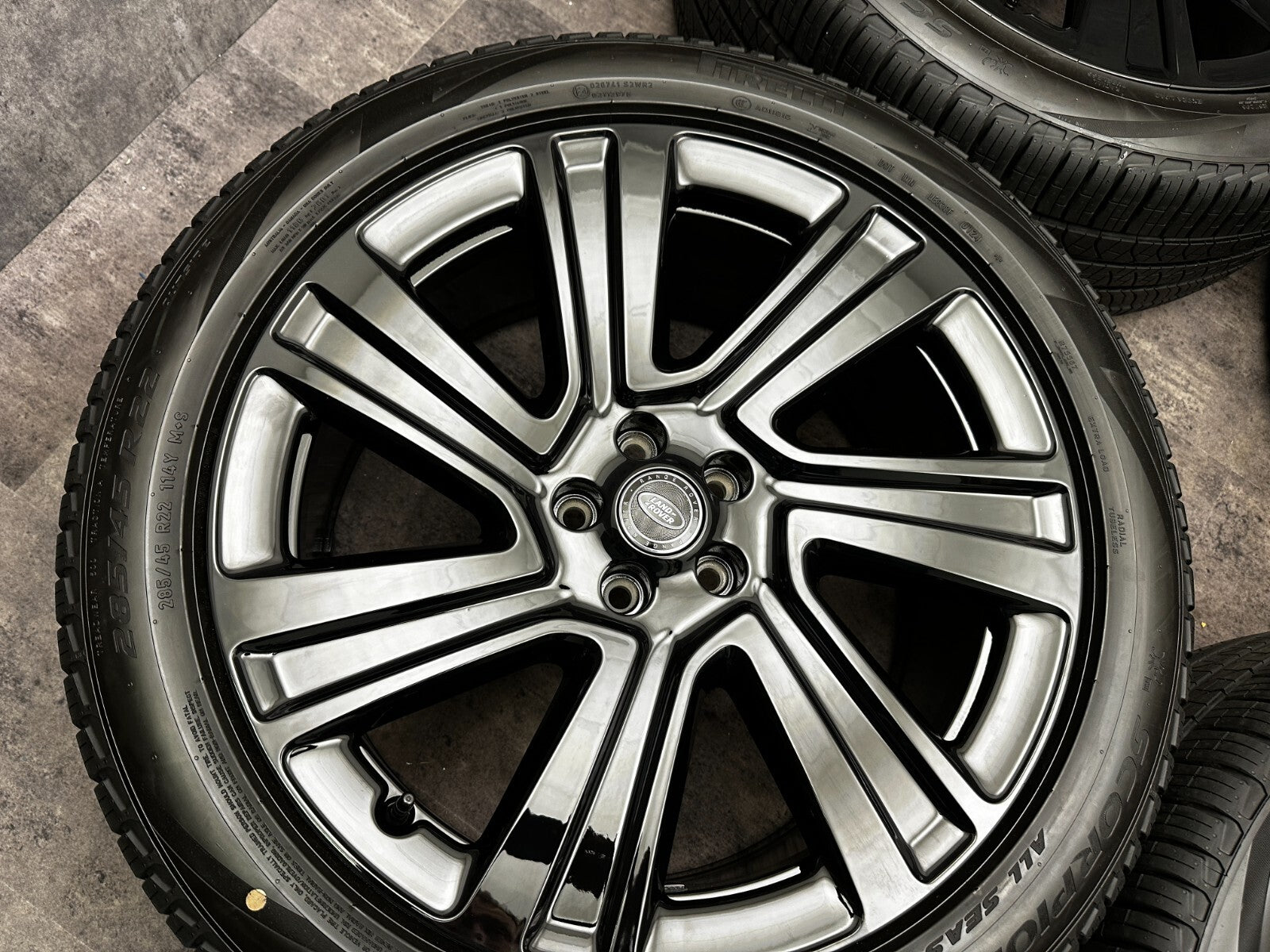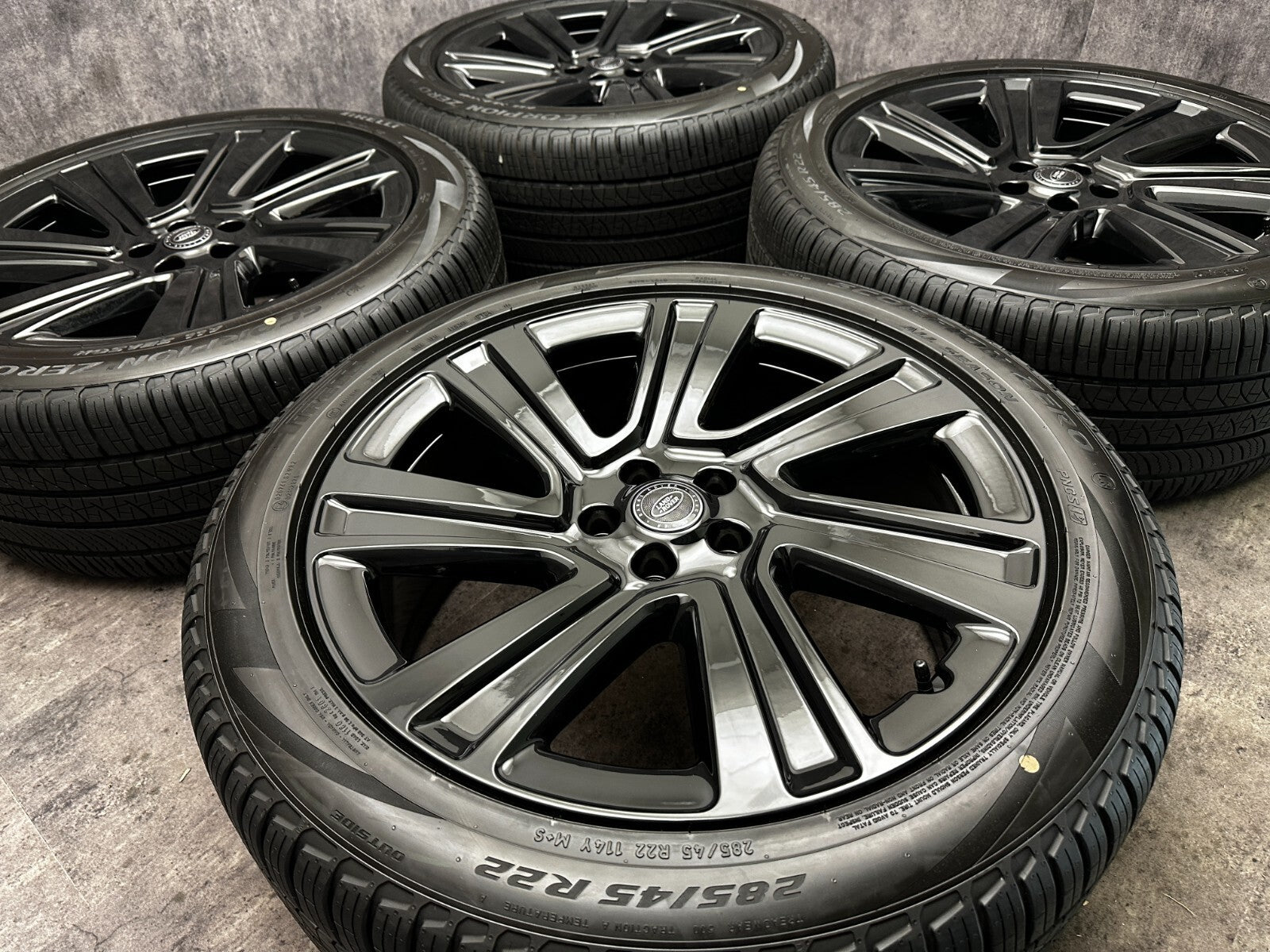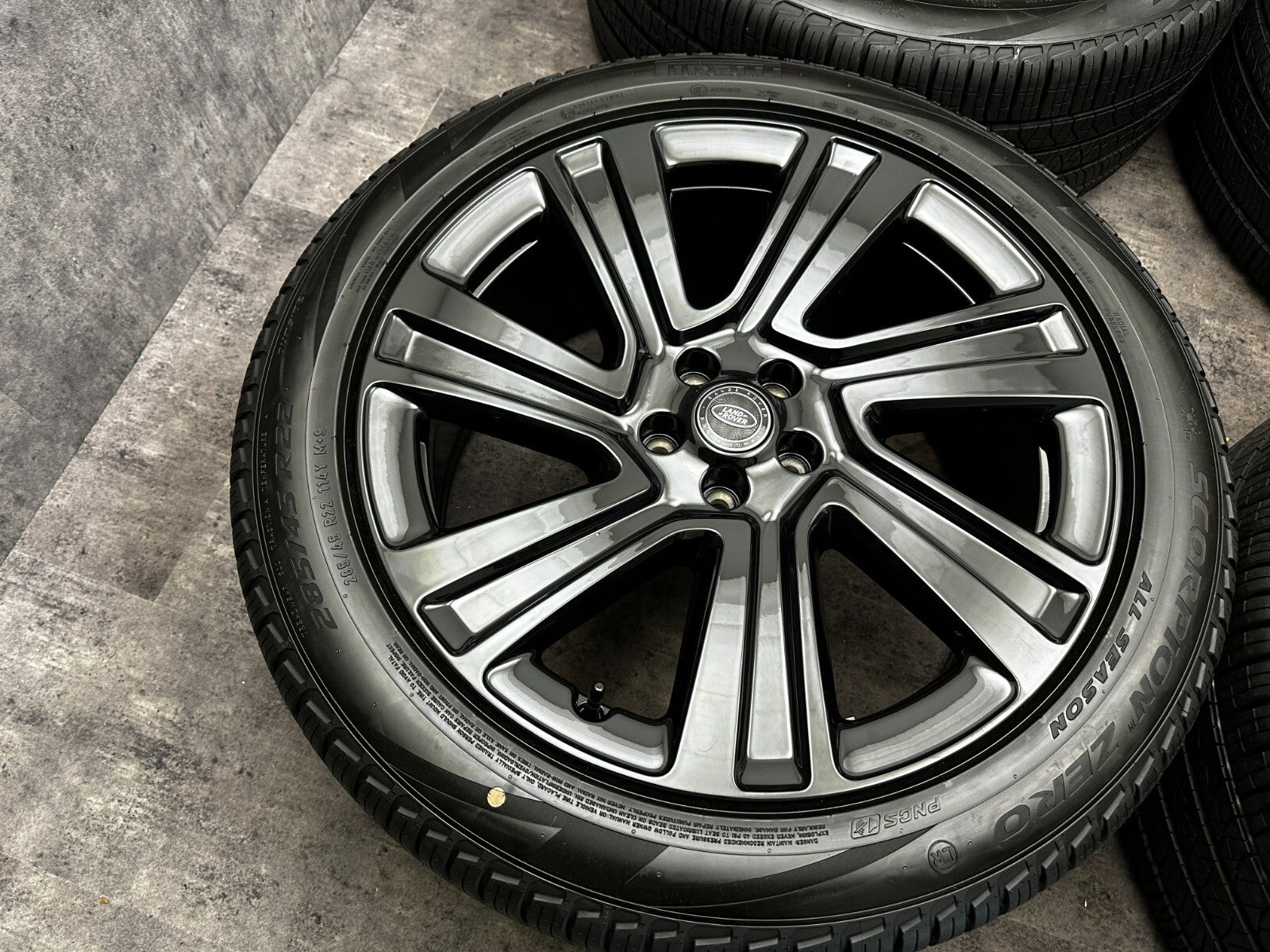 item set of four genuine 22" RANGE ROVER L460 style 7023 alloy wheels fitted with pirelli pzero a/s tyres. this set complete with pre-programmed tpms valves and center caps. tyres with pimples intact, done no miles wheels unmarked and in pristine condition. worth knowing our wheels are removed directly from new/used vehicles so we know their history must know its shipped from the UK we ship on a daily basis we have customer support in place