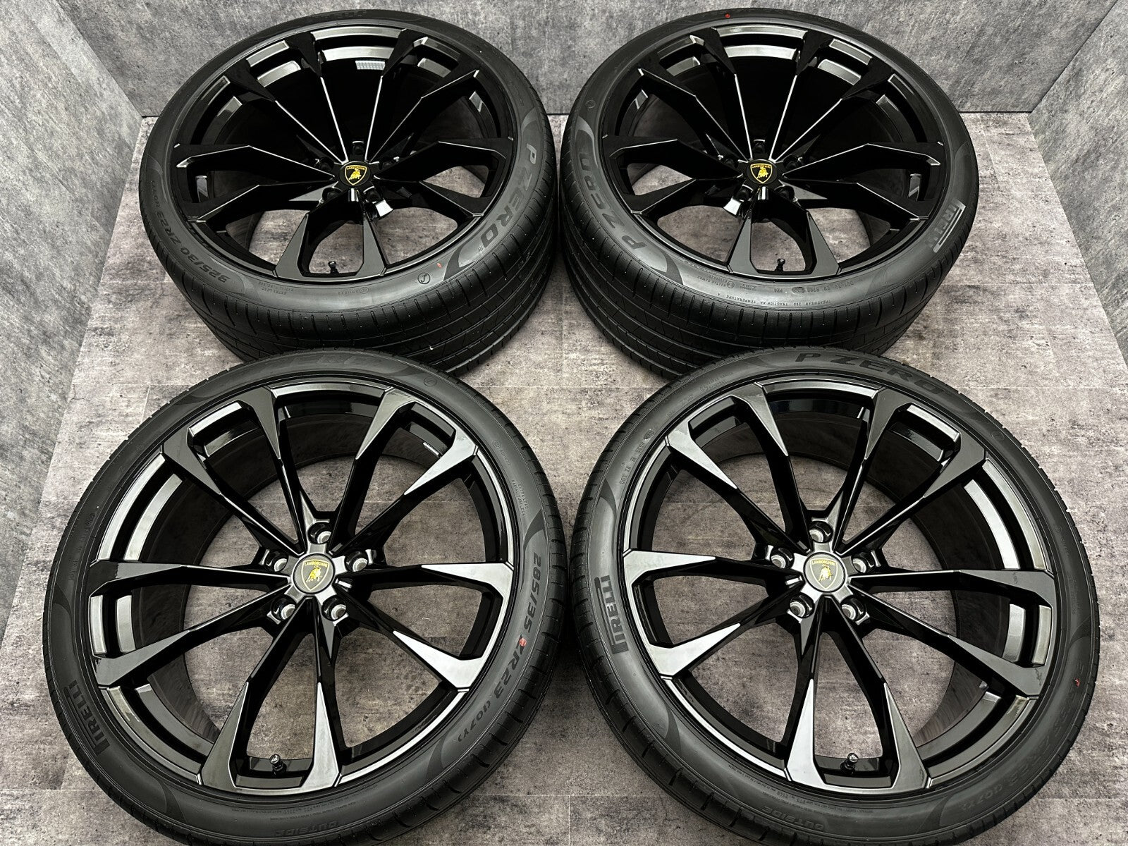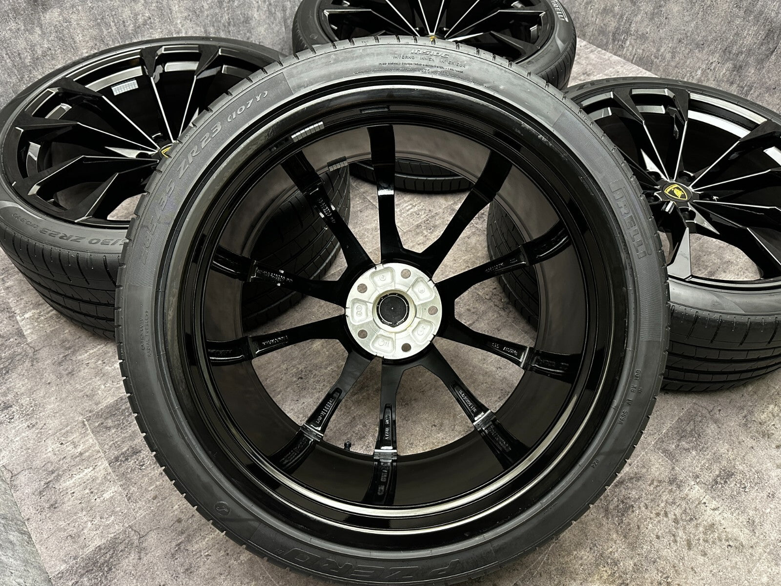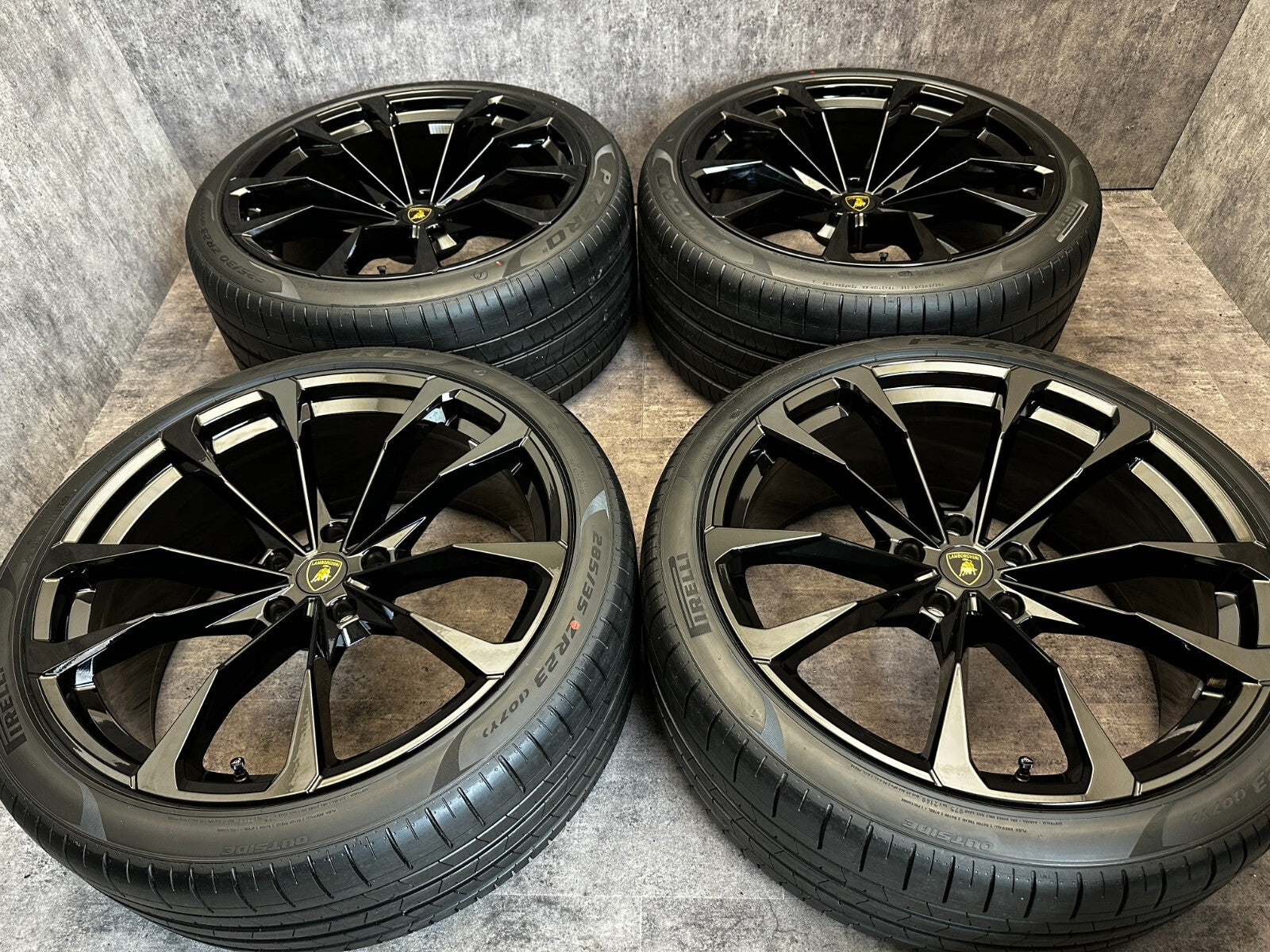 item set of four genuine 23" lamborghini taigete wheels fitted with pirelli pzero (L) tyres wheels are unmarked and in pristine condition. taken off a new car in the dealership and replaced with 24" aftermarket wheels. worth knowing our wheels are removed directly from new/used vehicles so we know their history must know its shipped from the UK we ship on a daily basis we have customer support in place