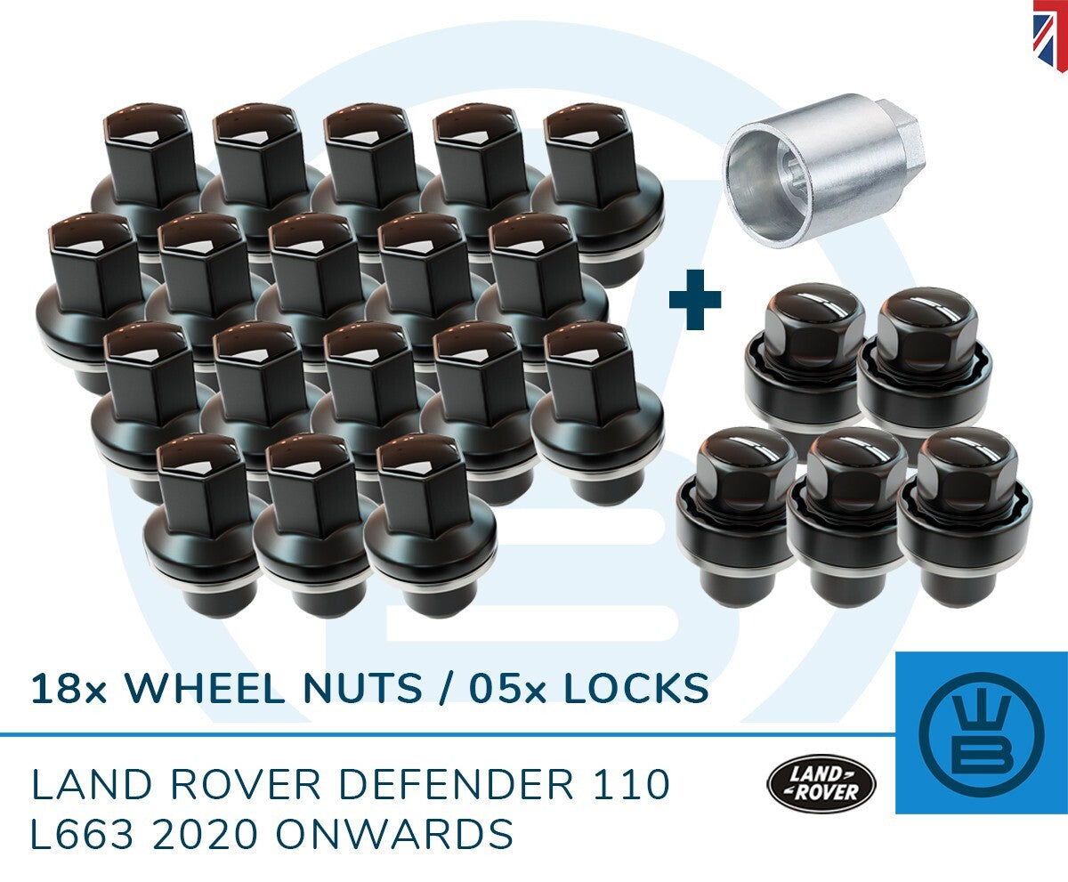 LAND ROVER DEFENDER 110 L663 2020 black wheel nuts & locks 100% genuine LR
