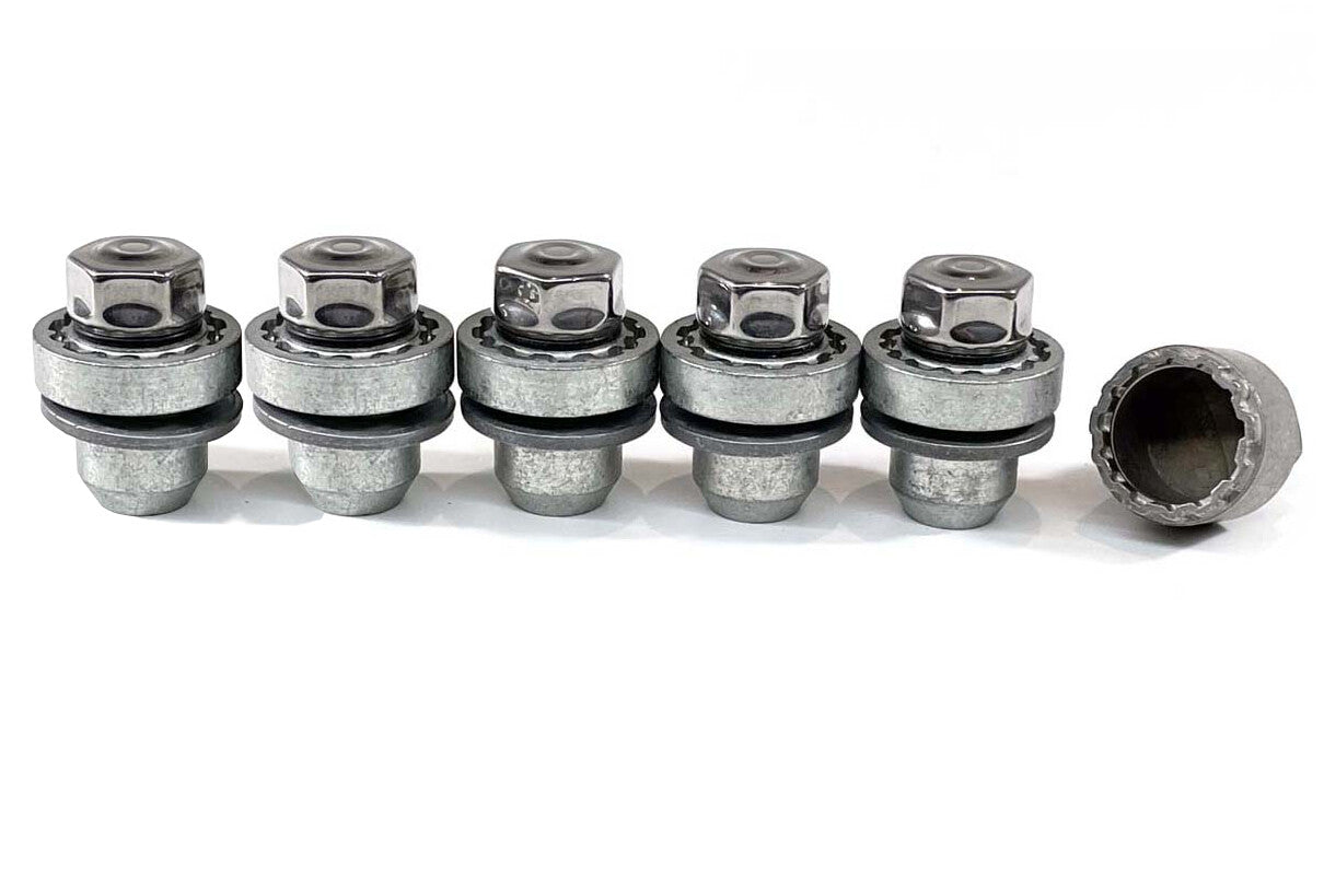 item set of 5 locking nuts. this is the latest varriant genuine LR lock nut set complete with key its thatcham approved and the most difficult lock to remove to date!