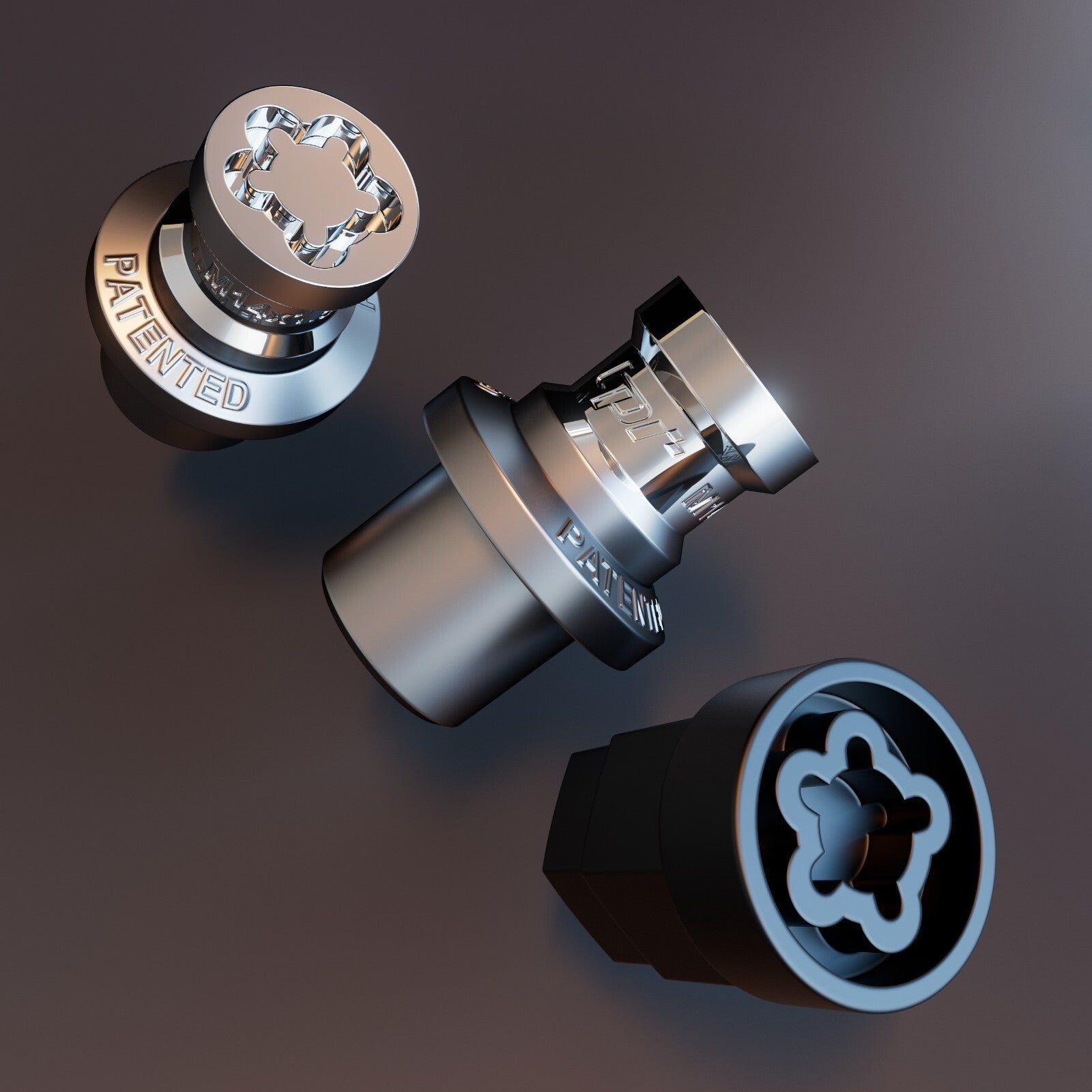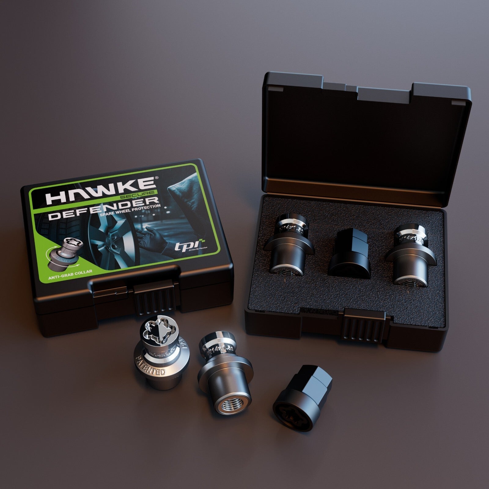 item replacement locking wheel nuts, removal key and registration sticker. this is the easiest and most effective way to combat the current spate of rear wheel thefts a number of master lock out keys are in circulation enabling theives to steal the rear wheels from your defender in a matter of seconds. our replacement locks are very different to the OEM LR keys and with multiple combinations only available through TPi we can ensure that your real wheel is safe and ready when you need it!