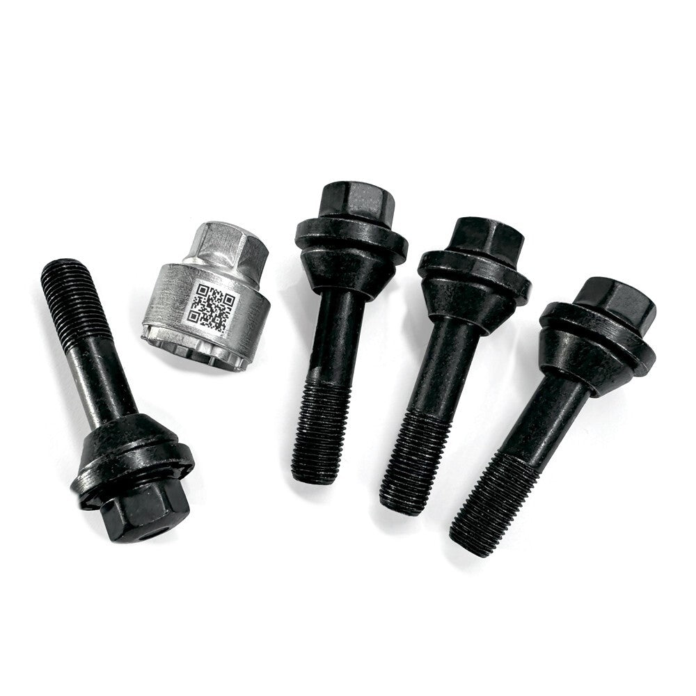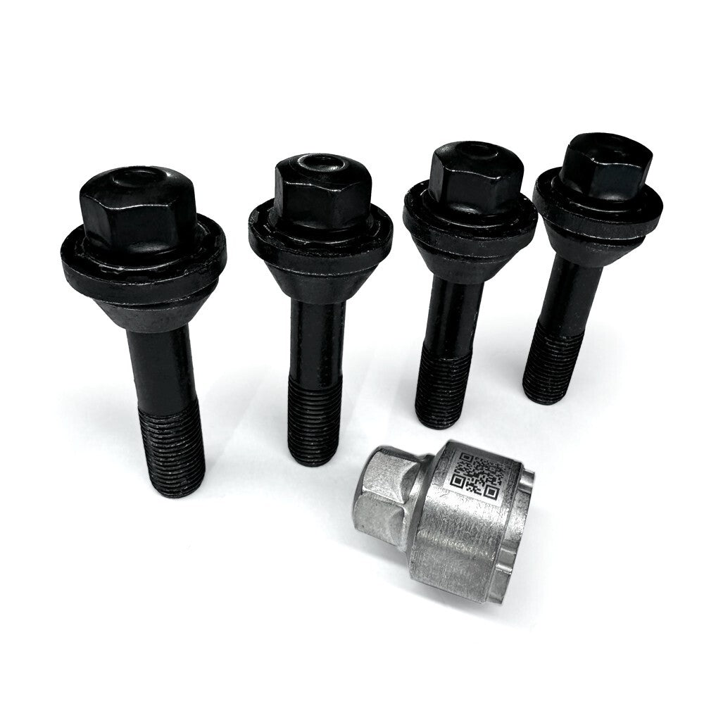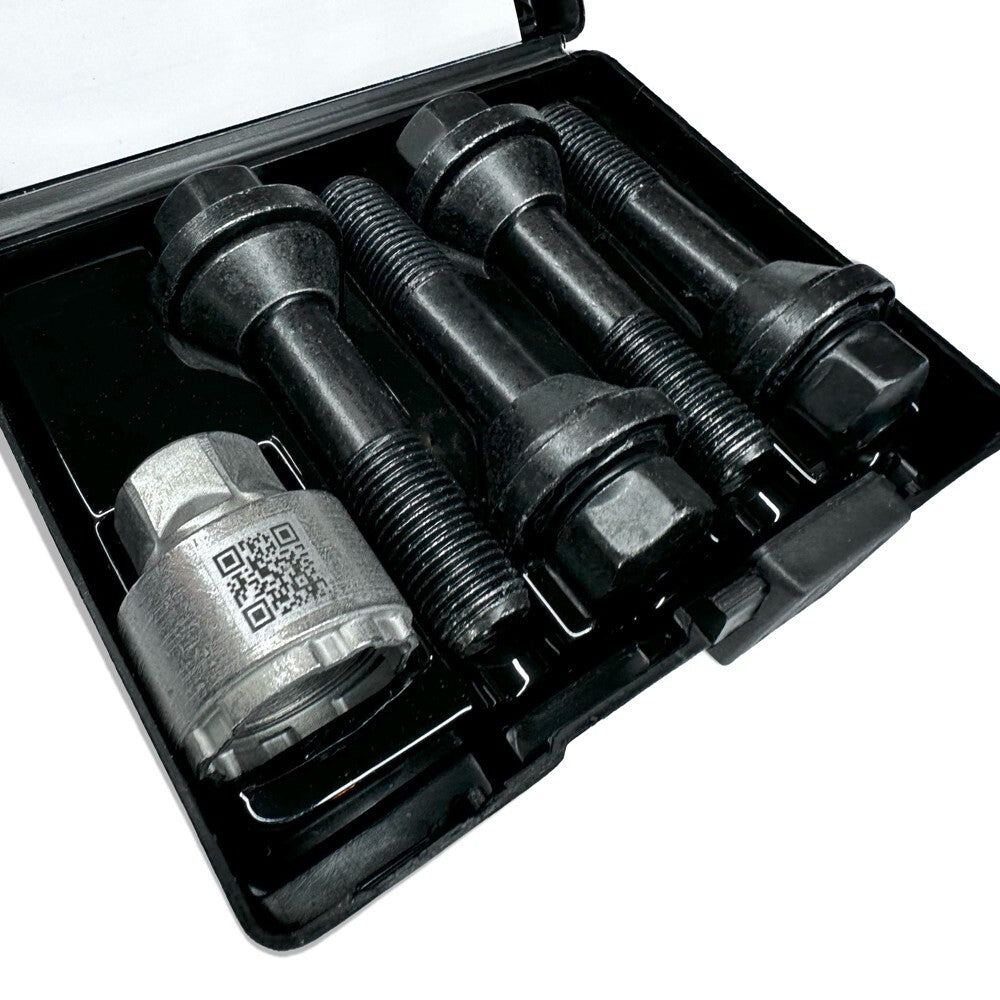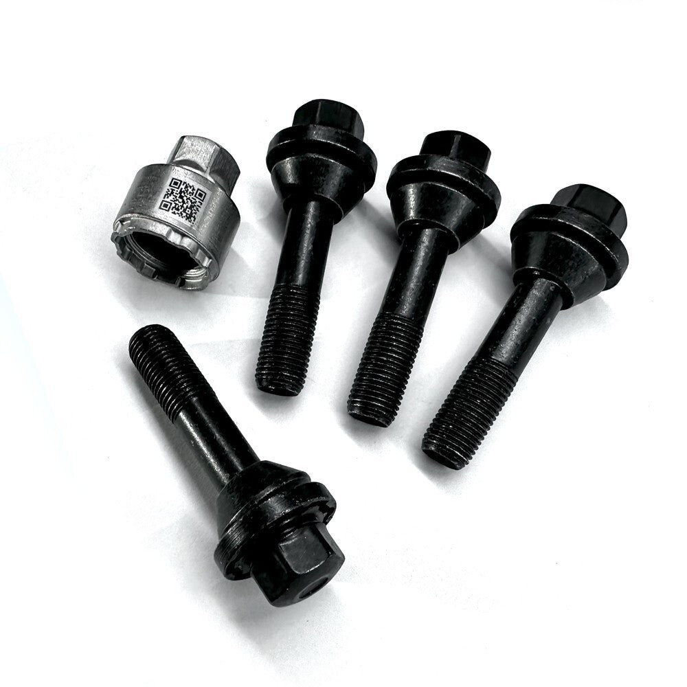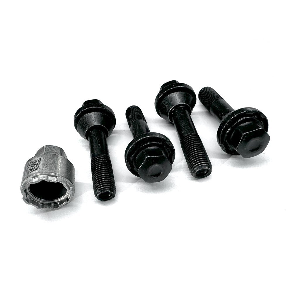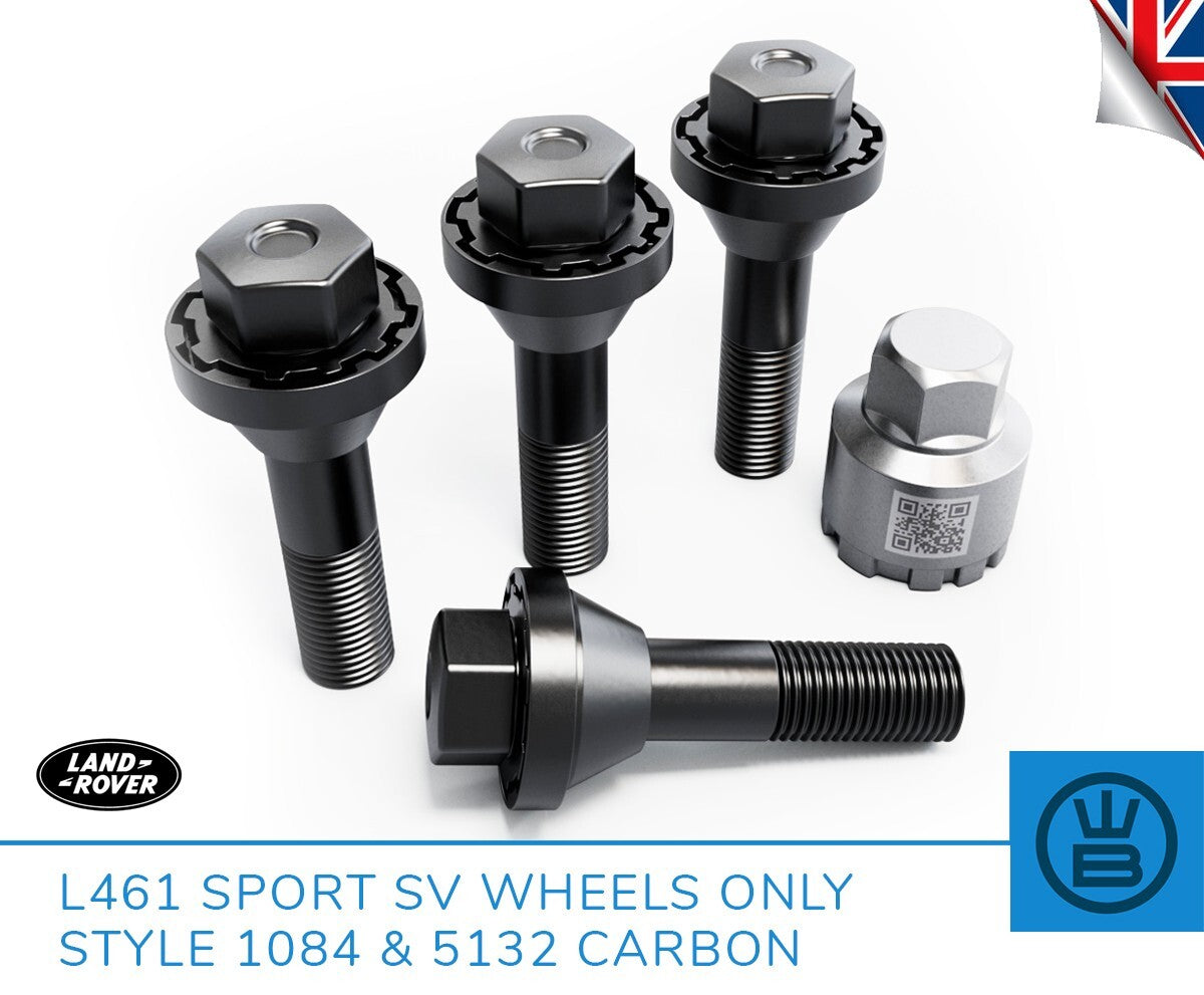 item set of 4 locking nuts. this is the latest variant genuine LR lock bolt set complete with key its thatcham approved and the most difficult lock to remove to date! THEY WILL ONLY WORK WITH THE STYLE 1084 AND 5132 CARBON WHEELS THEY WILL WORK ON ANY MODEL L461 SPORT USING THE ABOVE WHEELS THEY ARE LONGER THAN THE STANDARD L461 APPLICATION LOCK BOLT FYI data - 14x1.5 thread type with 54mm of thread from bottom of seat (standard lock has just 30mm of thread from the bottom of the seat)